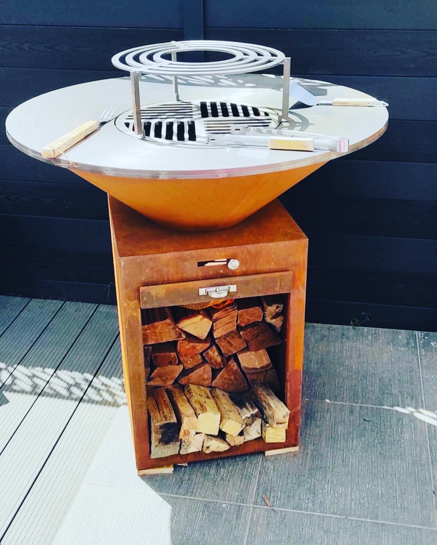 Ce brasero tout-en-un à la teinte sombre, combine charme et ergonomie.